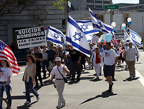 It has been one year since the start of the war with Iraq. Protesters came out for the cause and to protest everything else too. Just like in the 1960s, these anti- war protests are very democratic; everyone seems to be able to get his or her personal yah yahs out. A lot of cell phones were being used by folks who were there and not there at the same time. The best cell phone use I saw was people holding their phones in the air to send the sounds, music, speeches and photos to someone who could not be there. It was a beautiful day in the neighborhood, with a festival atmosphere in front of City Hall.