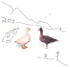 Although they admired his enterprising nature, some folks said they thought the hound was a bit of a voyeur, but they never said it to his face, not being willing to risk being bitten over what they knew was merely a gossipy opinion and not necessarily a fact at all and anyway there were always some rather private things going on about the farm that they themselves liked to take a gander at. (Perhaps that last phrase might help you to laugh at the pun about the goose if you hadn't already gotten it.) Now, one day a very prudish, tee totaling hippopotamus whom the other hippos had nick-named Saint Augustine for his pious pretension, mistakenly happened to rumble, I suppose you could say "ramble" but it was really more of a "rumble," into the farmyard grounds (you can probably guess that the farm was in Africa), and made a little sort of "tsk-tsk-tsk" sound at the sight of the totally inebriated hare who happened to be right in the middle of singing his very favorite song. Since a good shepherd always takes care of his flock, that was all it took for him to start tearing into the hippo, first with very sharp words and then when that didn't seem to do much good, at the hippo's backside with even sharper teeth. You may think that a hippo could brush a dog off just like that but not in this case! The hippo, being on the young side, had only recently gotten a little tail and he valued keeping it so he went scurrying off, whimpering something that sounded like "Hang the fang!" but I'm not really sure what it was or even what it meant.